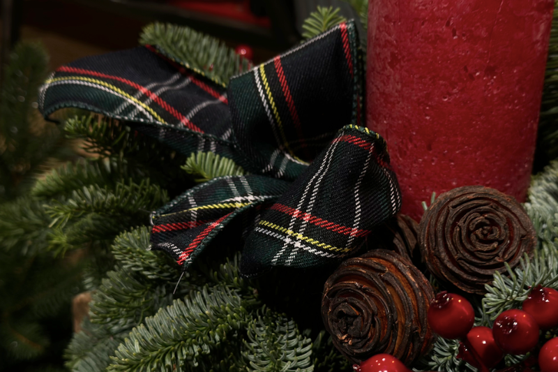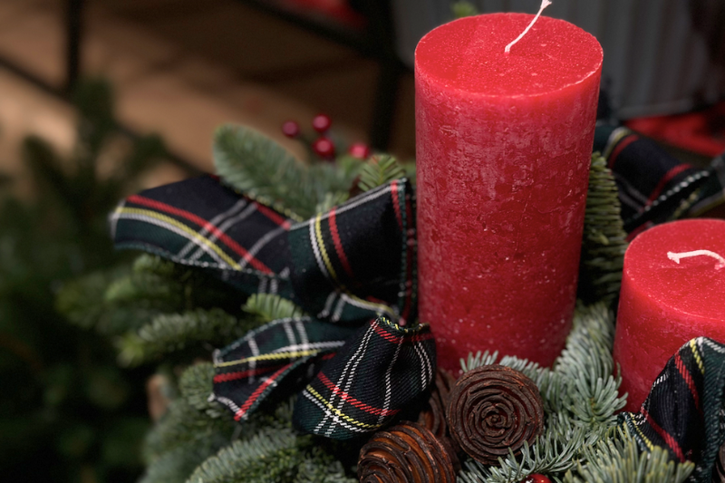 Decora tu mesa de navidad con nuestro centro de velas rojas. Elaborado por floristas, el centro de mesa incluye dos velas rojas junto con una combinación de verdes navideños naturales, detalles como piñas y lazada decorativa.