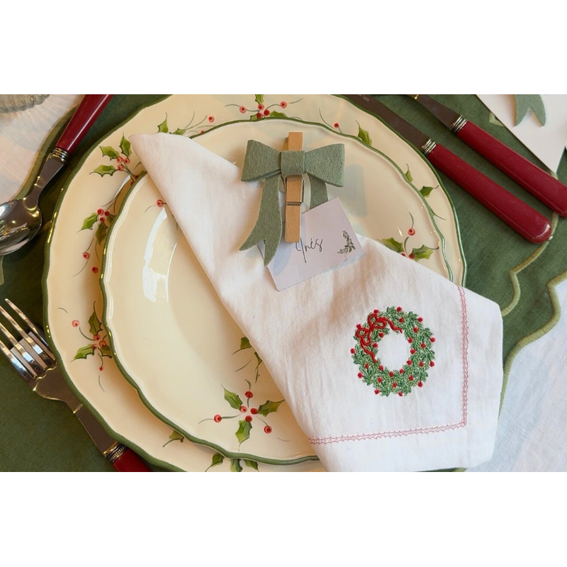 Decora tu mesa de Navidad con estas delicadas pinzas con lazo verde, perfectas para marcar el sitio de cada invitado de forma sencilla y elegante. Ideales para sujetar tarjetas con nombres, menús o pequeños mensajes, aportan un toque festivo y cuidado a la puesta en mesa.