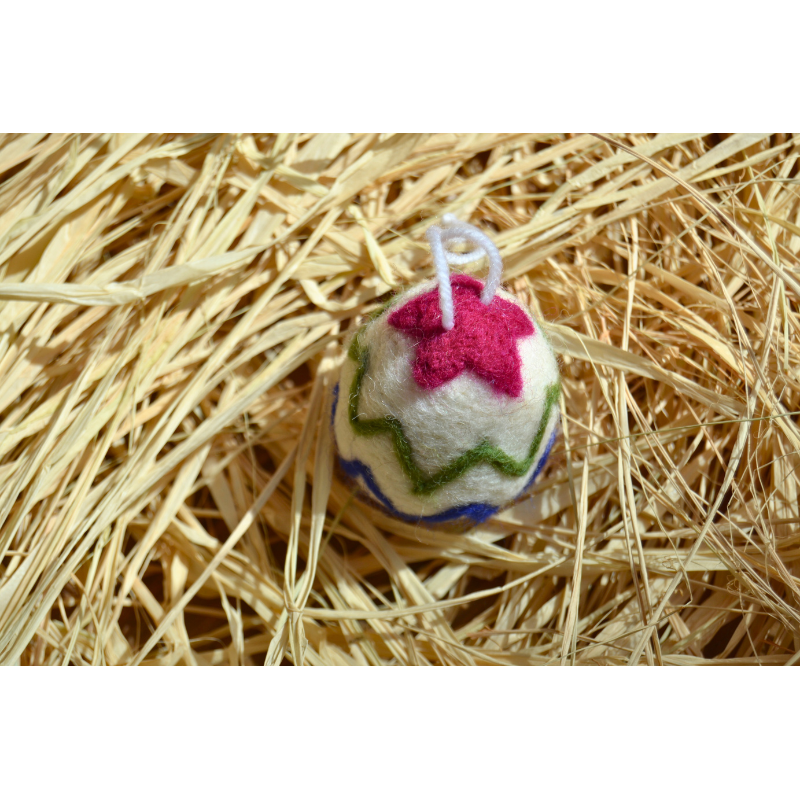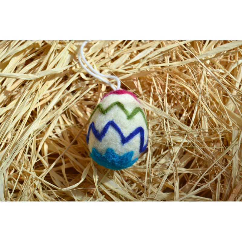 Este huevo de fieltro multicolor es un detalle lleno de alegría y color, perfecto para decorar durante la Pascua. Su combinación de colores vivos aporta un toque festivo y primaveral que hará que cualquier decoración destaque.