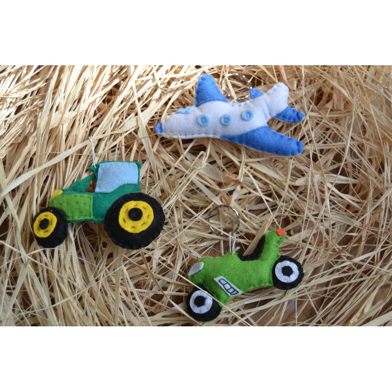 Elaborado cuidadosamente en fieltro de colores con detalles cosidos, este pequeño tractor destaca por su diseño simpático que encanta especialmente a los más pequeños.