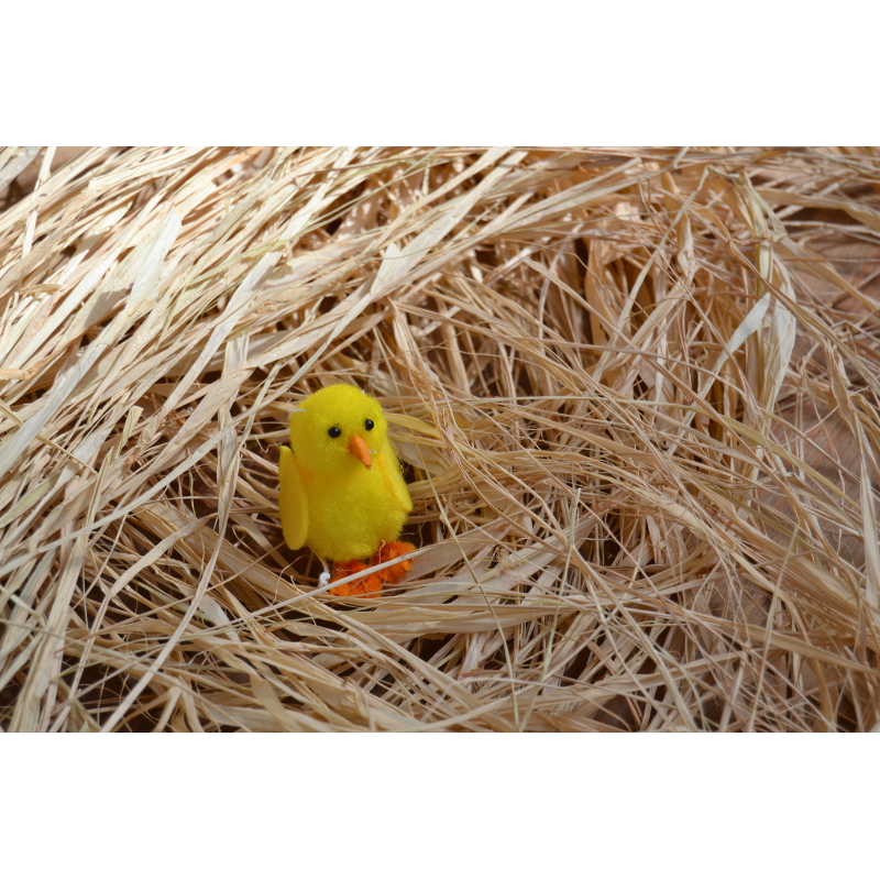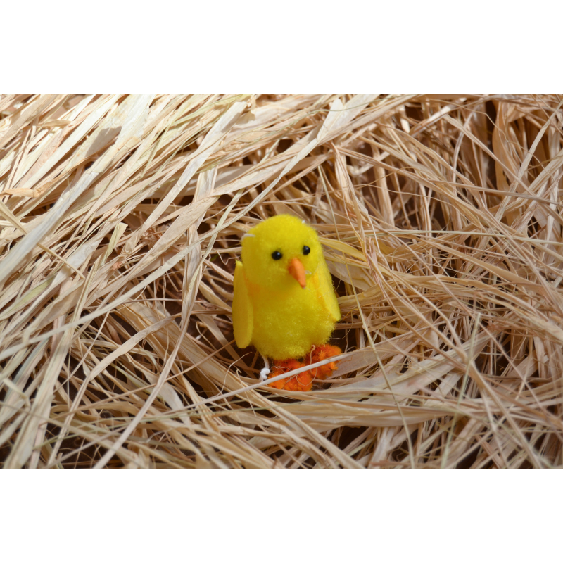 Pollito amarillo de fieltro, perfecto para darle un toque primaveral y alegre a tus decoraciones. Ideal para colgar de palmas y palmones, cestas de Pascua, mesas o centros de mesa, aportando encanto y color.