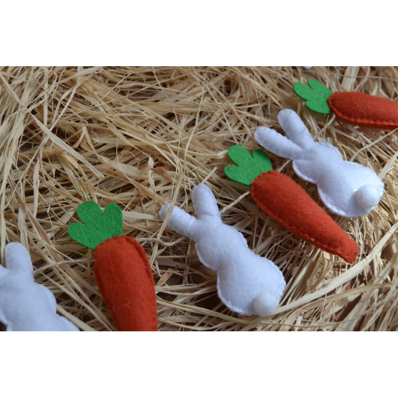 Guirnalda de zanahorias y conejitos de fieltro, de 1,2 m de longitud, ideal para decorar palmas y palmones, mesas de Pascua, habitaciones o cualquier rincón que quieras llenar de encanto primaveral. Un detalle alegre y colorido que aporta diversión y frescura a tus decoraciones