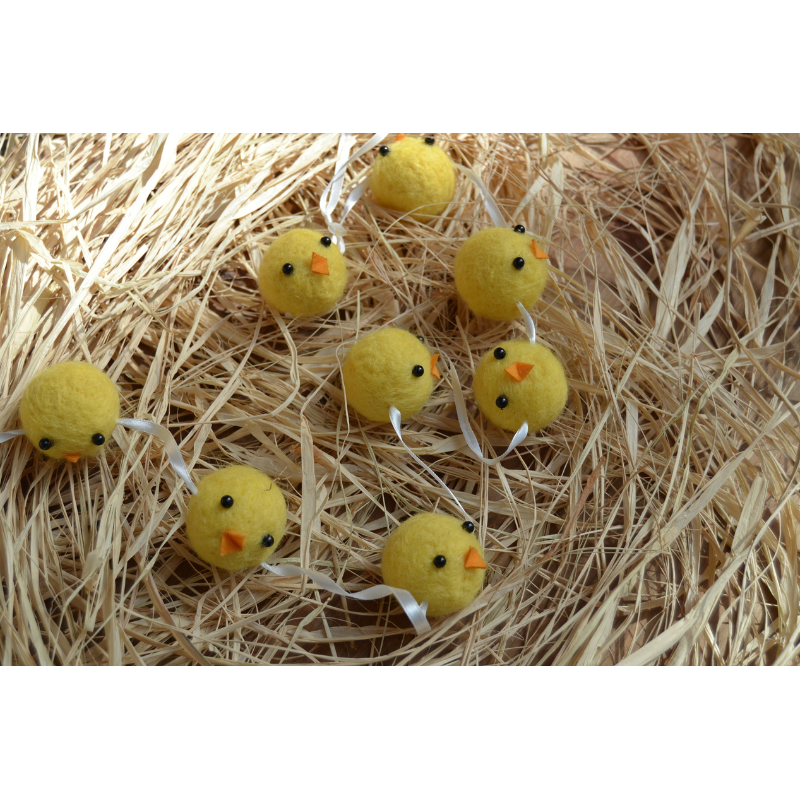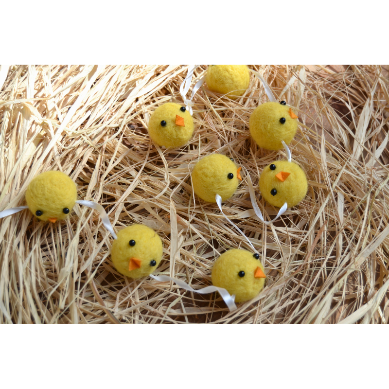 Guirnalda de pollitos de fieltro, de 1 m de longitud, ideal para aportar un toque alegre y primaveral a tus decoraciones. Perfecta para adornar palmas y palmones, decorar mesas de Pascua, cestas, habitaciones o cualquier rincón que quieras llenar de color y ternura. Un detalle divertido que hará que tus espacios luzcan festivos y llenos de vida.