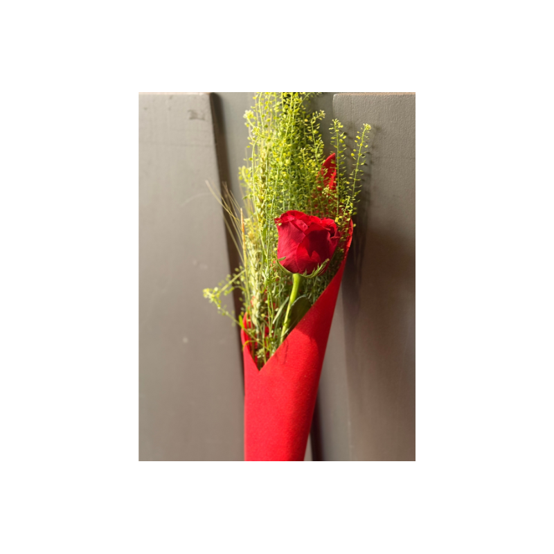 Regala la rosa de Sant Jordi con Távola. La rosa se presenta envuelta con un cono de tela rojo, en su interior la tradicional rosa, espigas y talpsi. Disponible envío a domicilio.